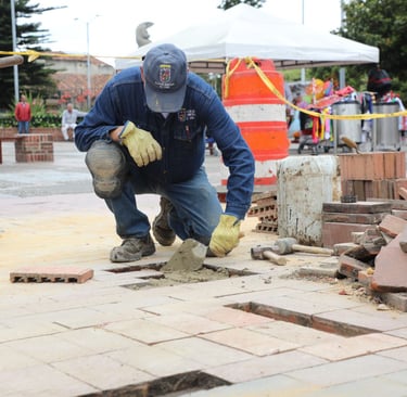 Mantenimiento del adoquín afectado por hundimientos, ondulaciones y baches.