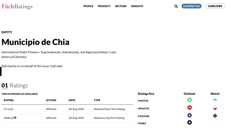 Con esta nueva ratificación por parte de Fitch Ratings, el municipio de Chía se consolida como un modelo de gestión financiera responsable, generando confianza en la ciudadanía, los inversionistas y el sector empresarial.